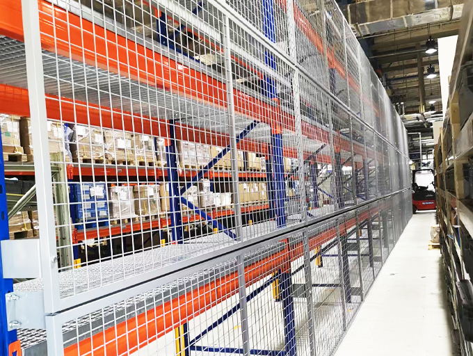 貨架背網:是一種將貨架放貨區域進行保護的金屬網墻,使空間規劃隔離,貨物分類隔離存放,防止散件物品高空掉落。